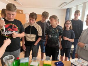 Vom 16.-18.06. fand das alljährliche MINT-Camp an unserer Schule statt. 30 Schüler:innen der 7. Klassen sowie neun Gastschüler aus Torgelow, Rostock und Neubrandenburg nahmen an den unterschiedlichen naturwissenschaftlichen Aktivitäten teil. Die Kinder besuchten verschiedene Chemie-, Physik- und Biologie-Workshops, erkundeten die Hochschule Stralsund, das Ozeaneum und das Museumshaus in Stralsund. Das Camp war sehr informativ und spannend!