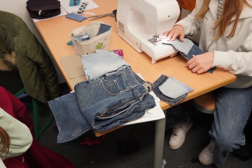 In einem weiteren begeisternden Projekt unter der Leitung von Frau Kästner begaben sich die Schüler in die Welt des Nähens. Ganz nach dem Motto „aus alt mach neu“ erschufen die Schüler kleinere Projekte wie zum Beispiel Taschen aus alten übriggebliebenen Hosen oder Stoffen.